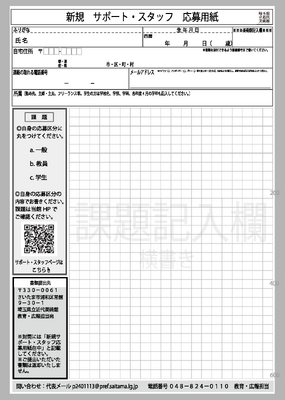 ※封筒には「新規サポート・スタッフ応募用紙在中」と記載ください。